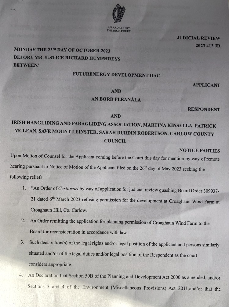 The specific reason for the quashing is not clear. We understand that the development plan for Carlow Co Carlow changed before ABP made their decision, and that ABP did not seek further input from Coillte/Futurenergy at that point.